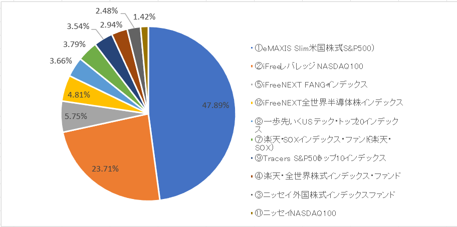 - ポートフォリオの約半分が「eMAXIS Slim 米国株式(S&P500)」