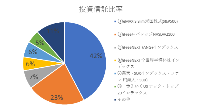 - ポートフォリオの半分弱が「eMAXIS Slim 米国株式(S&P500)」